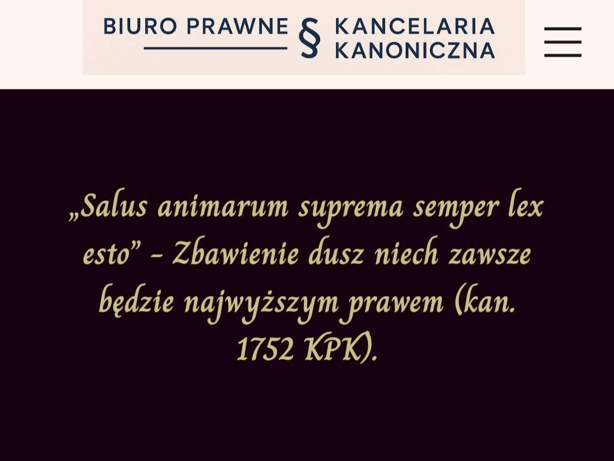 Wyobraźcie sobie, że posiadacie do dyspozycji różne systemy norm - prawo cywilne, prawo kanoniczne, parafialne regulaminy, zwyczaje i precedensy.. Każde z tych praw określa, co wolno a czego nie wolno; co karane a co dozwolone lub jak ma być zachowany porządek. Ale pewnego dnia stajecie przed sytuacją w której wszystkie przepisy nakazują różne, sprzeczne działania. Jest jednak jedna reguła, która może uchylić wszystkie inne, jeśli tylko tego wymaga dobro człowieka – nie mienia, nie własności, nie porządku formalnego, lecz jego życia duchowego. Pytanie ? Które prawo w Kościele ma pierwszeństwo przed wszystkimi innymi, jeśli w grę wchodzi najwyższe dobro człowieka? „Zbawienie dusz niech zawsze będzie najwyższym prawem” – to ostatni kanon Kodeksu Prawa Kanonicznego i jednocześnie zdanie, które przypomina, że w Kościele najważniejszy jest człowiek i jego dążenie do zbawienia. Nie przepisy, nie formalności ale ktoś, kto szuka dobra, sensu i pokoju. Prawo ma pomagać a nie przygniatać - dawać drogę wyjścia, a nie zamykać. Niekiedy przepisy stają się pomocą i tutaj dobrym przykładem jest proces o stwierdzenie nieważności małżeństwa. Dla wielu osób to brzmi strasznie formalnie a tymczasem chodzi o coś bardzo ludzkiego czyli o sytuacje w których w dniu ślubu naprawdę brakowało czegoś ważnego – dojrzałości, wolności decyzji, prawdziwego zrozumienia i odpowiedzialności. Wtedy Kościół nie patrzy tylko na dokumenty ale patrzy przede wszystkim na człowieka na jego historię, ból i nadzieję. Właśnie dlatego ten ostatni kanon jest tak ważny – przypomina, że celem nie jest procedura ale pomoc w odnalezieniu prawdy, pokoju oraz osiągnięciu zbawienia - najpierw człowiek, potem paragraf.